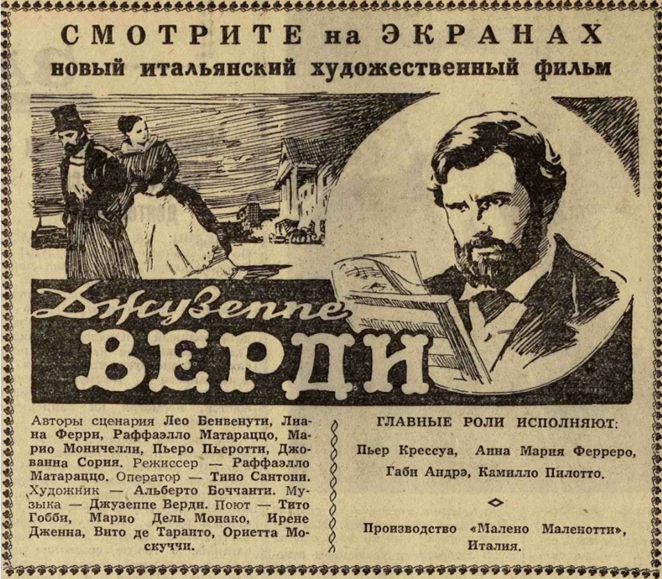 Картина шла в советском кинопрокате с октября 1956 года. Советский дубляж киностудии имени Максима Горького. Это очень увлекательная и трагическая история Джузеппе Верди, который выбрался из нищеты и бедности, только благодаря Судьбе, наделившей его музыкальным талантом и любовью одной особенной женщины - Джузеппины Стреппони...