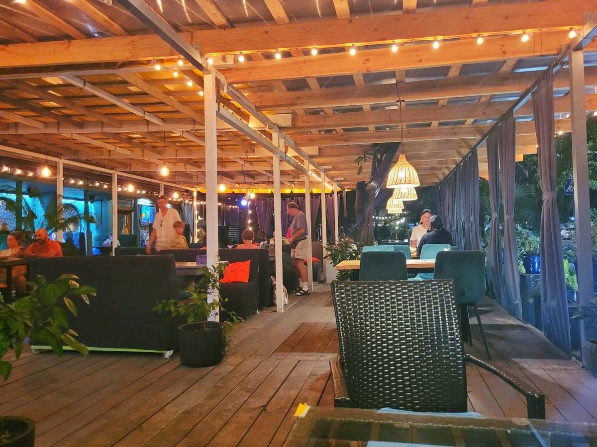 Обычно все рестораны, которые я посещаю в отпуске, выбираю заранее по отзывам и позиционированию заведения. В тот вечер делать это было лень, и я решила просто идти по центральной улице в Гагре и зайти в то заведение, которые понравится снаружи. Так мой выбор пал на "Золотую рыбку" (в одних источниках она упоминается как ресторан, в других как кафе). Внешне заведение выглядело современно и даже не колхозно, что редкость для Абхазии. Плюс на открытой веранде звучала живая музыка, а ужинать под приятное музыкальное сопровождение - моя слабость. Находится "Золотая рыбка" в нескольких метрах от популярной у туристов заброшки - ж/д станции Гагрипш, между Старой и Новой Гагрой. Состоит заведение из 2 залов: основного и открытой веранды, где в тёплый сезон сидели практически все посетители. На открытой веранде, как я уже говорила, звучала живая музыка. Девушка пела неплохо и, что важно, не слишком громко. Меню небольшое: на одной стороне листа А4 - вся кухня, на другой - напитки. Судя по