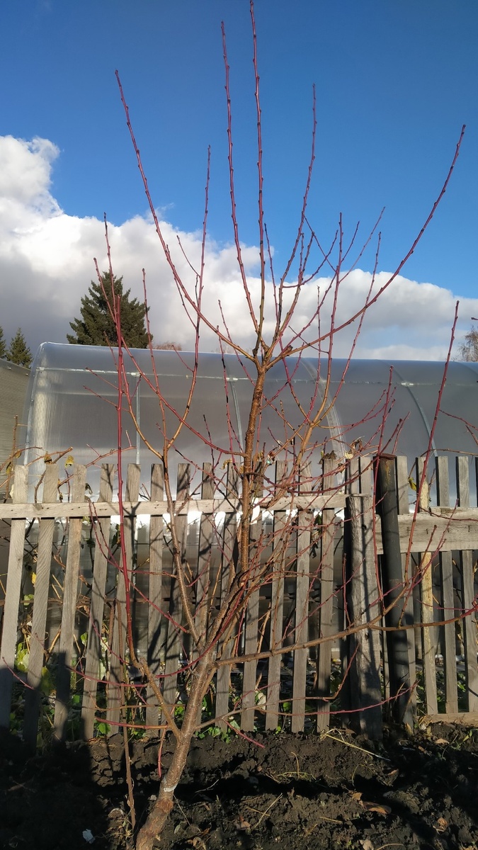 Часть статьи "Интродукция или технологии?.." (раздел, посвященный персикам) решил выделить в отдельную публикацию и рассмотреть более широко. Что такое "Дерево на шарнире" и зачем оно нужно? Зимостойкие плодовые деревья обычно выращивают в штамбовой форме. Но в холодном климате недостаточно зимостойкие сорта лучше выращивать в стелющейся форме. При этом крону дерева смолоду формируют так, чтобы она расстилалась по земле: ежегодно пригибают ветви и закрепляют их в горизонтальном положении разнообразными шпильками. Лишние ветви вырезают. Это позволяет в самом начале зимы укрыть крону уже после первых снегопадов, что спасает от морозов все дерево и его плодовые почки. Но на маленьких участках стелющееся дерево занимает значительную площадь, под низкой кроной трудно обрабатывать почву, много сил тратится на формирование кроны, ее пришпиливание, пригибание ветвей перед окучиванием снегом. Другими словами, "Дерево на шарнире" это способ формирования и укрытия дерева на зиму целиком без форм