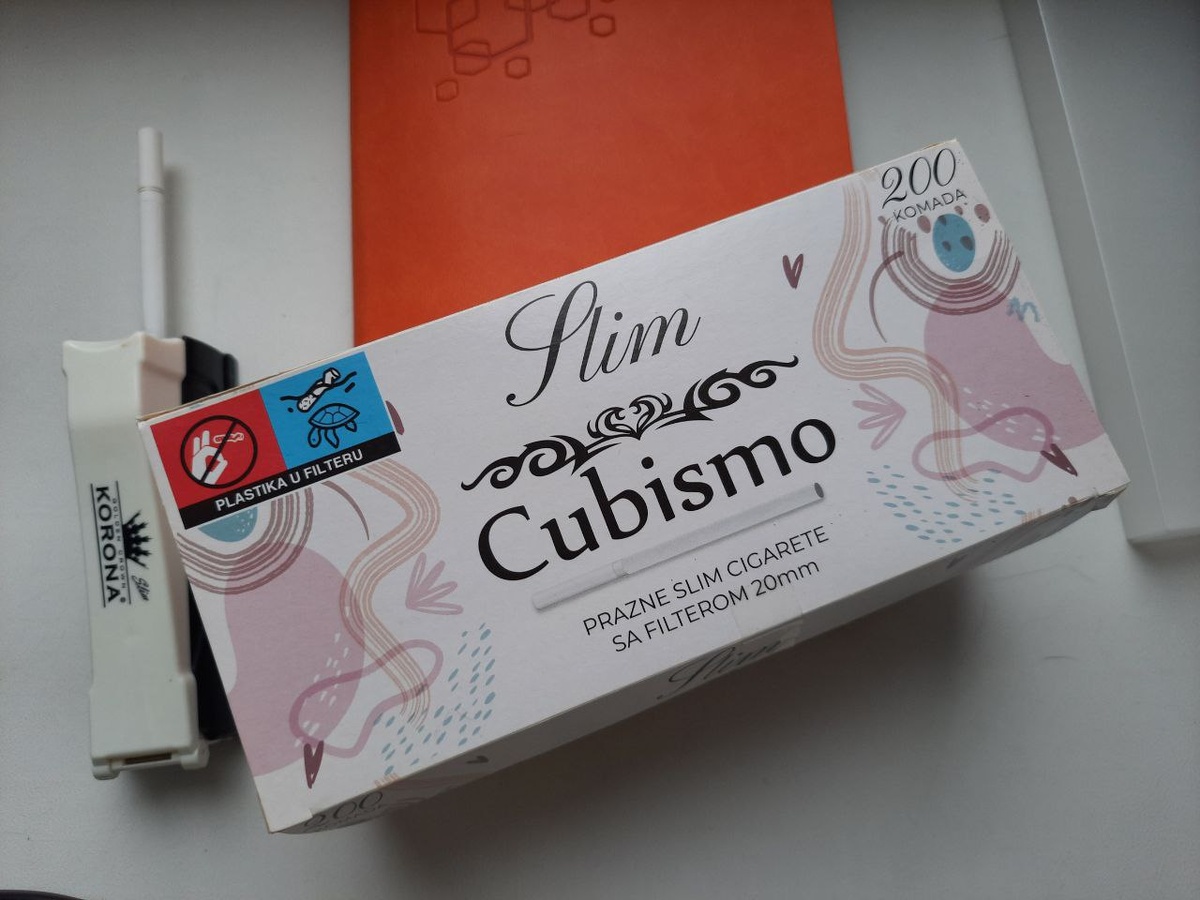 В выходные ходили по магазинам с целью купить пару новых новогодних игрушек, чтобы обновить елочный гардероб. Шлялись по разным торговым центрам, где я попутно заглядывал в табачки, пока жена рассматривала витрины с игрушками. И тоже присмотрел себе нарядную упаковку гильз. Кажется, что я их уже когда-то описывал, тем не менее, решил купить еще раз. Внимание! Данная публикация предназначена для совершеннолетних граждан – прежде всего, для тех, кто курит. Я не рекламирую табачную продукцию и продавцов, и не пропагандирую курение. Записка основана на личном мнении и носит ознакомительный характер. Курение вредит вашему здоровью! Это гильзы Cubismo в формате слим. Читается и переводится вроде как «кубизм». У кого-то даже могут возникнуть ассоциации с Кубой – страной сигар и табака. Однако к странам Карибского бассейна данный продукт не имеет никакого отношения. Гильзы произведены в Европе, в Польше, компанией Cargo Trading S. C. Девушка в табачном отделе выдала мне упаковку с витрины (200