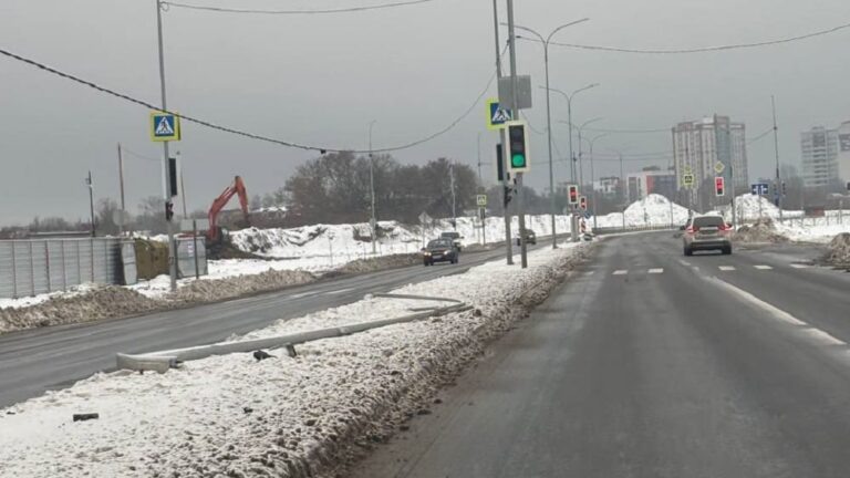 На новой дороге в Брянске по улице Ильи Иванова лихачи успели снести опору