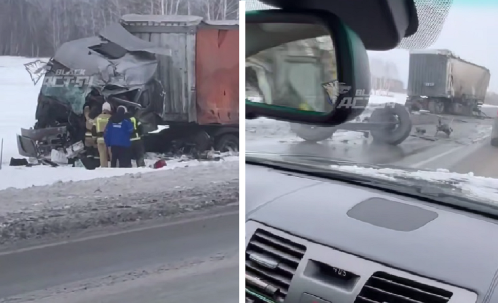 Лобовое столкновение двух фур произошло на трассе Р-254 в Новосибирской области