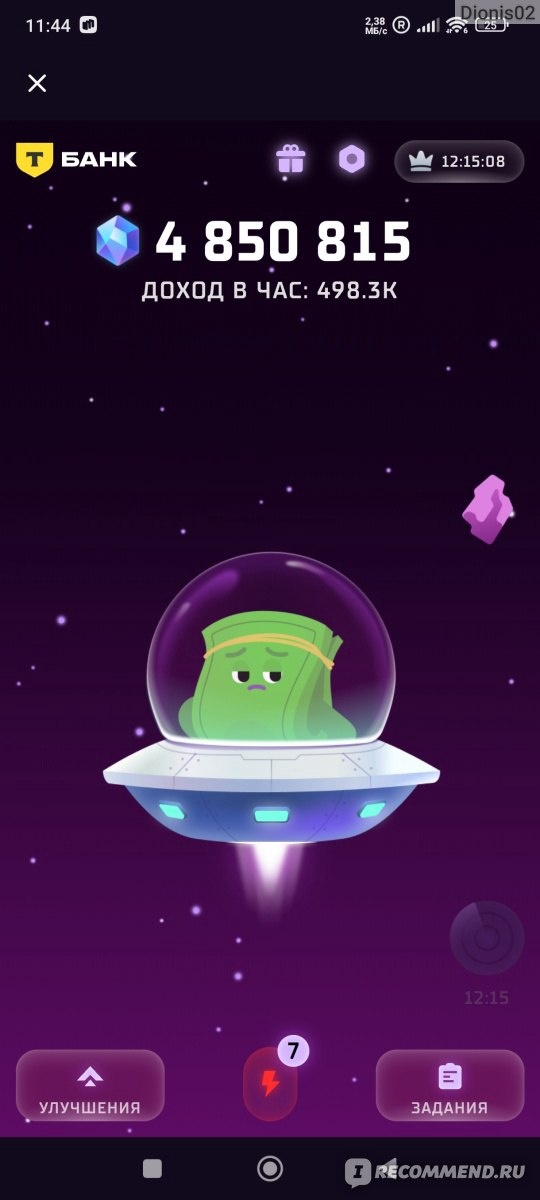 Но это только на первый взгляд. Тем более, что такие тапы сажают энергию, восполнить которую можно, использовав батарейку внизу экрана. Батарейка восстанавливается полностью за 3 часа, так что сильно часто вы тут не потапаете. Так же батарейки можно заработать, выполняя различные задания от Т-банка. Тут я бы советовал в первую очередь обращать внимание на задания, которые не только дают батарейки, но еще и увеличивают умножением количество кристаллов за тап.