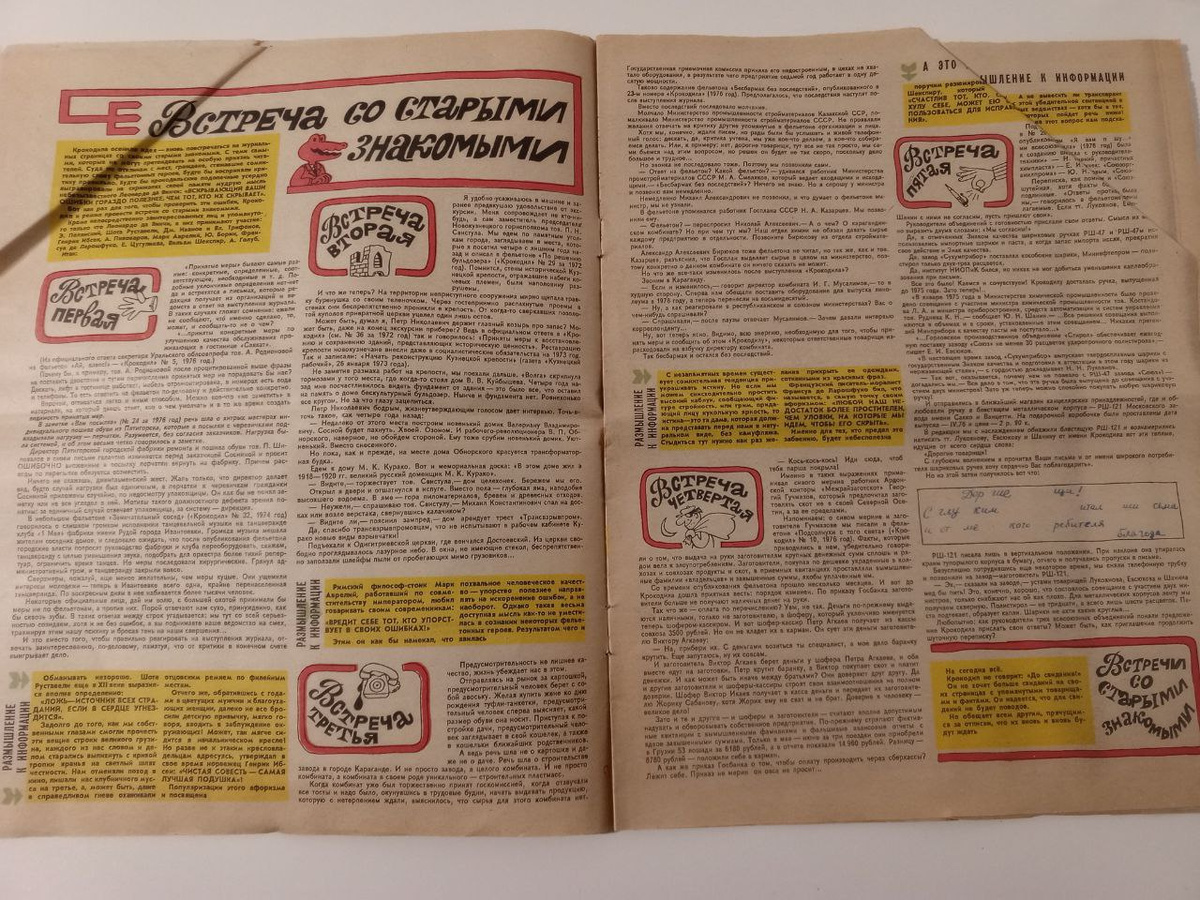 Рассказы и заметки в журнале высмеивают проблемы, связанные с низкой производительностью труда, пьянством на рабочем месте и халатным отношением к своим обязанностям. Карикатуры, как всегда, занимают центральное место. Художники тонко передают абсурдные ситуации, будь то чиновник, погрязший в бумагах, или работник, изобретательно уклоняющийся от своих обязанностей, или находчивый сантехник. Эти изображения обыгрывают привычные для советских граждан сюжеты, делая их смешными и запоминающимися.