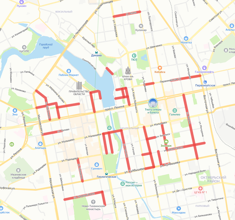 - Красноармейская — от Карла Маркса до Куйбышева;