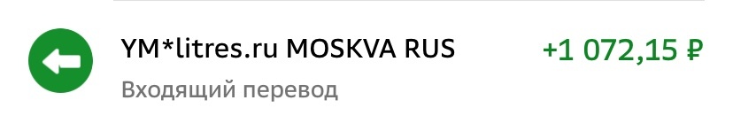Так вот, радость по поводу чего статья, получил первый гонорар от Литрес, публикую скан выписки из банка. Одна тысяча семьдесят два рубля пятнадцать копеек, это за год.