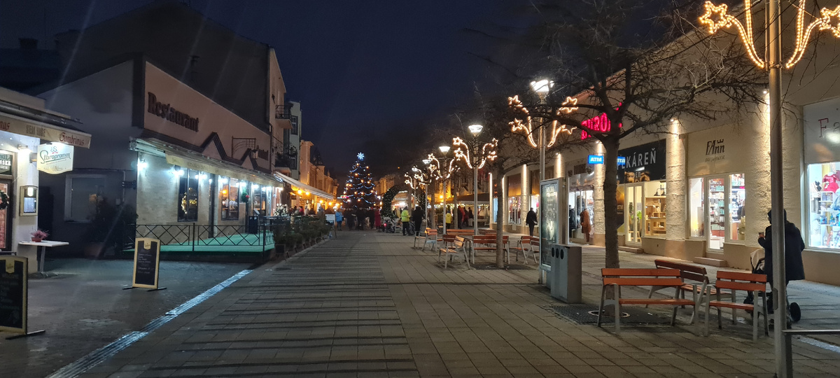 В Пьештянах тоже все украшено к Рождеству, но масштаб, конечно, не столичный. Мило, что на площади стоит много маленьких елочек, украшенных детскими поделками, и на каждой елке написан номер класса. В выходные на площади была даже живая музыка и тоже, конечно, палатки с едой и пуншем. Погода около нуля, но видимо из-за влажности ощущается как минус. Не хватает снега для новогоднего настроения...