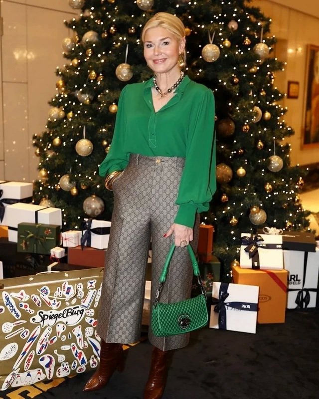 Выглядеть красиво, стильно и эффектно на вечеринке или корпоративе, естественно, хочет каждая женщине. А даме за 50 это еще и очень важно – подчеркнуть то, что она все еще способна привлекать внимание, нравиться и ощущать себя, конечно, уже не принцессой, но точно - королевой бала. 1. Стильный белый брючный костюм из прямых классических брюк со стрелками, белым топом с треугольным вырезом и строгим жакетом – тоже классического кроя – необычный, но имеющий право на существование торжественный вариант образа. Лаконичные белые туфли на высоких каблуках удачно вписываются в эффектный наряд, а крупное украшение из жемчужин, перемежающихся звеньями цепи, на шее и золотистая сумочка подчеркивают чистоту и праздничность основной гаммы. Выбор брючного костюма для вечеринки может казаться неочевидным, однако для дам возраста 50+ такой наряд может иметь ряд преимуществ: стильность, привлекательность и комфортность. 2. Насыщенно-синее платье-миди асимметричного кроя – очень эффектный и элегантный