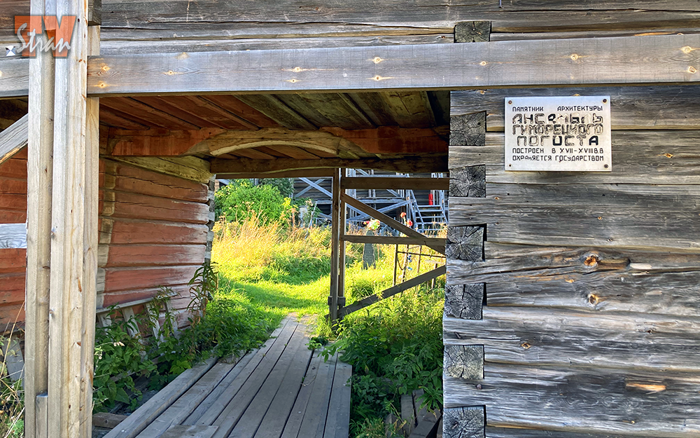 Продолжение, начало здесь Церковь эта стоит на дальнем конце Геморецкого погоста и неподалеку от дороги Вознесенск-Подпорожье. Рядом с церковью имеется отдельно стоящая колокольня и рубленные ворота с сохранившимися до наших дней фрагментами старинной ограды. Что интересно в Рождественской церкви? Прежде всего, ее шатровый тип. В отличие от уже помянутой церкви Георгия Победоносца, которая является собой четверик, сруб, на котором находится навершия с расширением в византийско-древнерусском стиле, здесь мы имеем дело с чисто шатровым каркасом, а в нижней части прямоугольная в плане клеть четверика, над ней стоят два поставленных друг на друга восьмерика, которые служат основанием шатра. И, соответственно, шатер, покрытый тёсом и увенчанной цилиндрической шеей с главкой луковкой, довершают общий архитектурный ансамбль церкви. В этой церкви ещё в большей степени поражают безупречно найденные пропорции всех частей храма, которые создают чарующее впечатление соразмерности и красоты. Общий