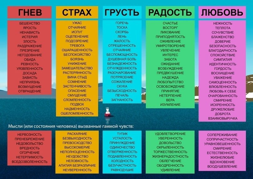 Чтобы вам было проще выполнять практику, воспользуйтесь таблицей эмоций.