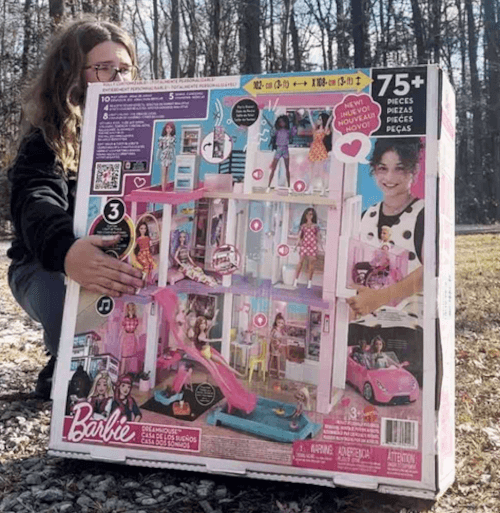 Курьер завернула в бумагу кукольный домик, чтобы не испортить сюрприз маленькой клиентке