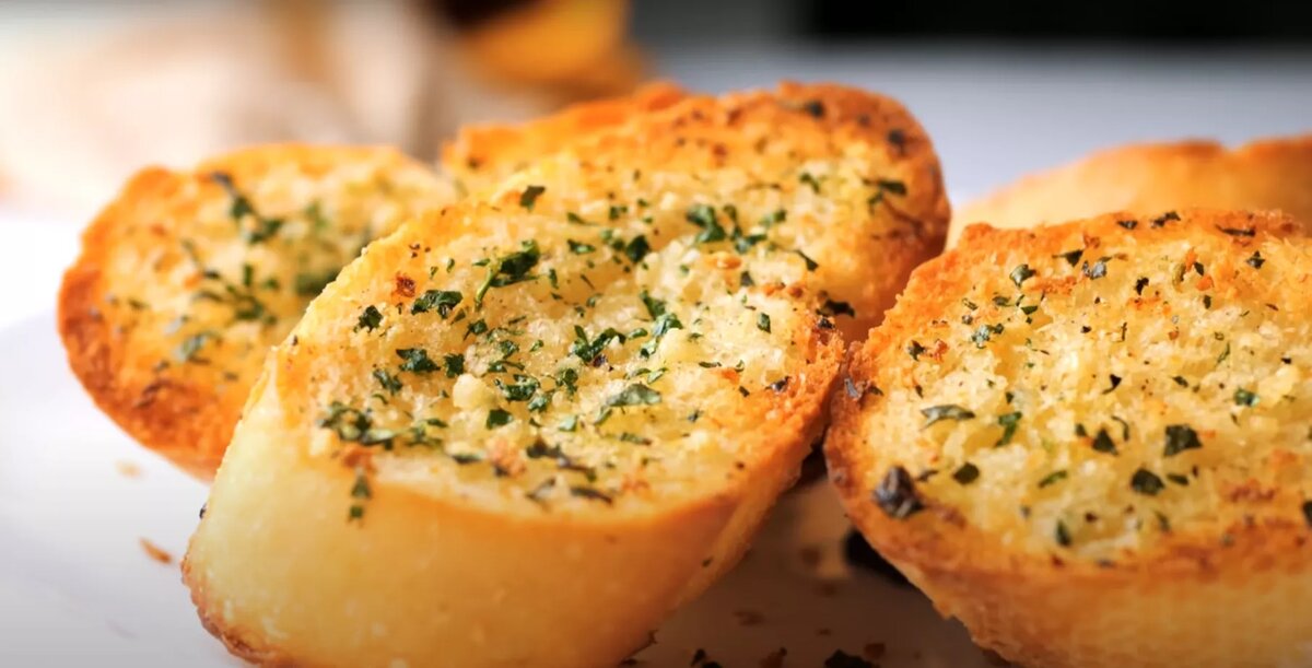 Запечённый багет — невероятно ароматная и вкусная закуска. Подавайте её с сыром, колбасными деликатесами и вялеными помидорами. Она также станет идеальным дополнение к супу или бульону. В компании друзей под бокал пива такая закуска исчезнет в мгновение ока.
