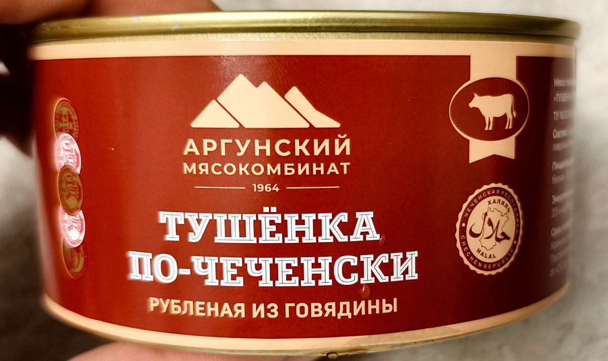 Заказал на Wildberies такую тушёнку. Говяжья тушёнка по-чеченски. Стоила она 369 рублей. Это самая дорогая тушёнка, которую я когда-либо покупал. Наверное должна быть пушечной.