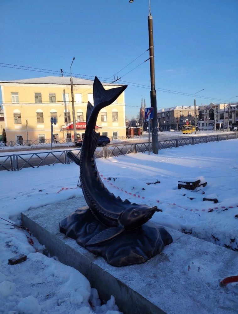 Это малая архитектурная форма, которая будет частью туристического навигатора. ЯрНьюс рассказывал, что в Ярославле появились новые туристические навигаторы, которые состоят из фигур медведей и интерактивных панелей. Всего в столице «Золотого кольца» появится 10 мест с такими малыми архитектурными формами, а по всему региону их будет 23. И вот в соцсетях появились фотографии установленной фигуры на улице Вокзальной в Рыбинске. Согласно контракту, в городе появятся две фигуры «Рыба на волнах»: на Волжской набережной в районе мельницы купца Калашникова и на площади железнодорожного вокзала на Вокзальной. Судя по фото, панель пока не установлена. Возможно, это вопрос нескольких дней, ведь в Ярославле почти сразу после установки фигуры стали устанавливать и панели. Добавим, что все навигаторы подрядчик должен установить до конца декабря.