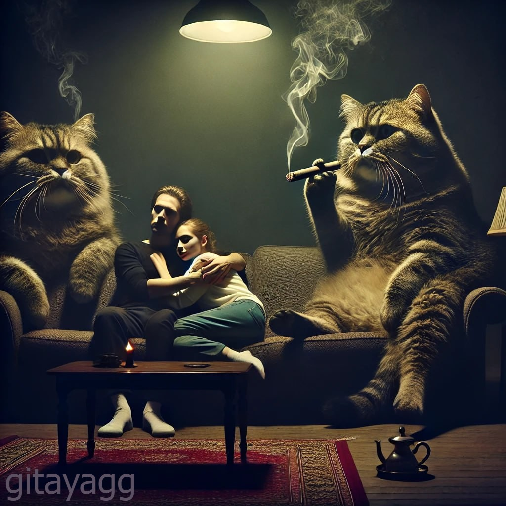 Показалось три кота, которые, шатаясь пытались идти, с трудом переставляя лапы. От гуляк за километр разило валерьянкой. Один передвигаться уже не мог и порывался встать на четвереньки, за что огребал от друзей. "Ну ты нажрался, животное, ик. Вставай на лапы, алкаш".