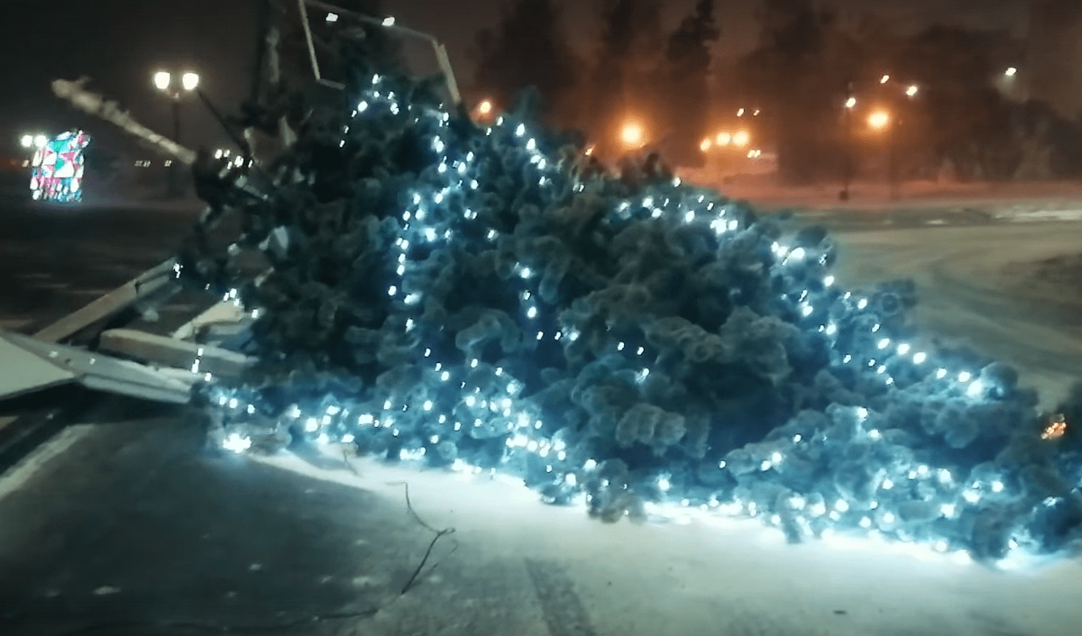 Ветер повалил праздничную ель в Петрозаводске