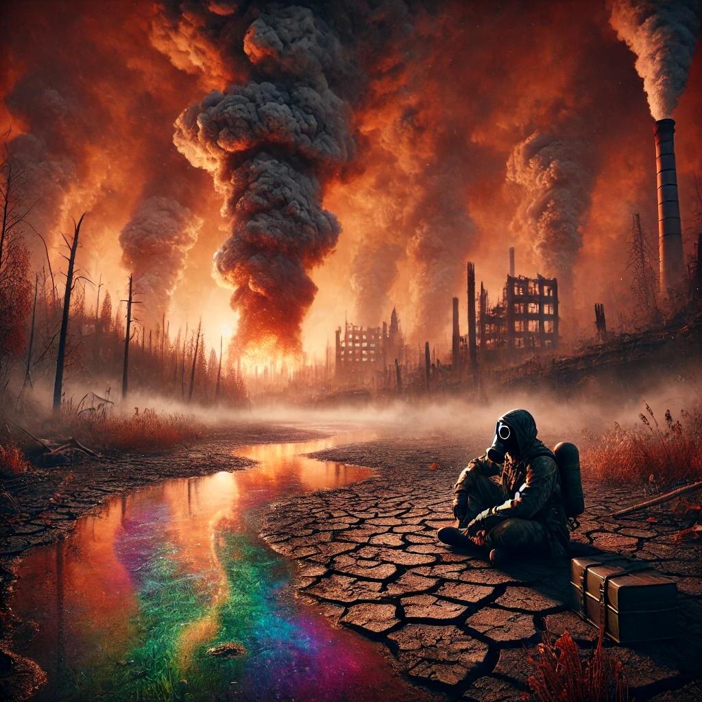 Я никогда не думал, что доживу до дня, когда мир начнет рассыпаться буквально у меня на глазах. Меня зовут Артем, мне тридцать два года, и я, как миллионы других людей, просто жил своей обычной жизнью — работа, дом, друзья, редкие поездки на природу. Но все изменилось за один месяц. Один проклятый месяц, который перевернул всю планету. Все началось с запаха. Странного, резкого, металлического. Он появился внезапно, как будто из ниоткуда, и распространился по всему городу. Я думал, что это просто выброс с какого-нибудь завода. "Очередная химия", — сказал я себе. Но потом стало хуже. Воздух стал тяжелым, дышать было трудно. Люди начали кашлять. Вначале мы не придавали этому значения, но через неделю больницы были переполнены. Люди падали прямо на улицах. Радио и телевидение вещали о том, что это связано с "аномальной активностью в атмосфере". Что-то про выбросы метана из-за таяния вечной мерзлоты. Но вскоре стало ясно, что это не просто выбросы. Почва начала чернеть, вода в реках покры