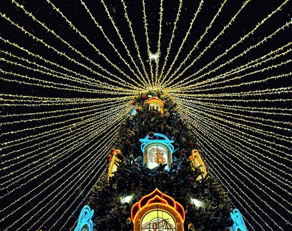 И последнее - елка в Раменском. Издалека мне показалось, что иконами украсили. Может так и задумано, она напротив храма стоит. Но все равно красивая 😊.