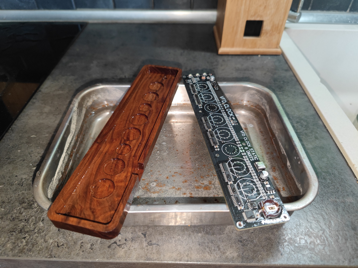 Здравствуй, Дорогой Читатель! Давеча рассказывал о своей новой разработке - часах в деревянном корпусе с использованием бамбуковых разделочных досок. И, дабы два раза не вставать - запулю еще один небольшой обзор, про вторую вариацию, на этот раз - чисто бамбуковую. Пилил я эти два варианта одновременно, т.к. операции по изготовлению есть сходные, и выгоднее сделать сразу и те и эти. Собственно, идея простая - эстетичнее, если древесина будет одной породы. Лаконичнее. Как по мне- так лучше. Для начала я отквасил очередную плату из плена ссохшегося корытца, посушил воздуходувкой.. И затем, сразу, не приходя в сознание - начал делать бамбуковый бутерброд. Жужжать можно с 10 до 13 часов, и с 15 до 20. Надо успеть напилить до 13-ти... Хотя у меня всё на резиновых ножках или ковриках, лишний раз дразнить соседей не хочется. В этом варианте - заместо корытца сверху устанавливается еще одна бамбуковая дощечка, в которой засверлены отверстия под лампы. Ну и все остальные дыорчки, технологиче
