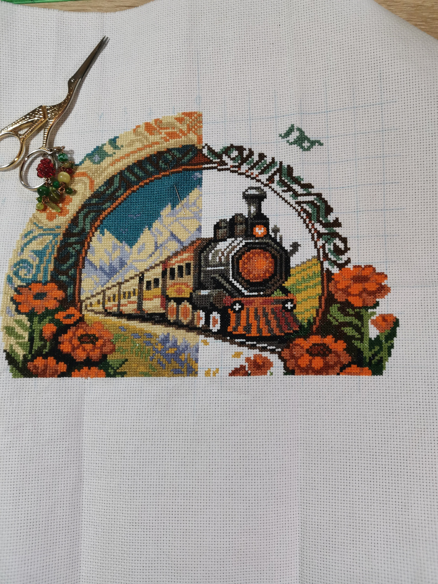 Ирина НН на этой неделе продолжила вышивать круг "Паровоз"