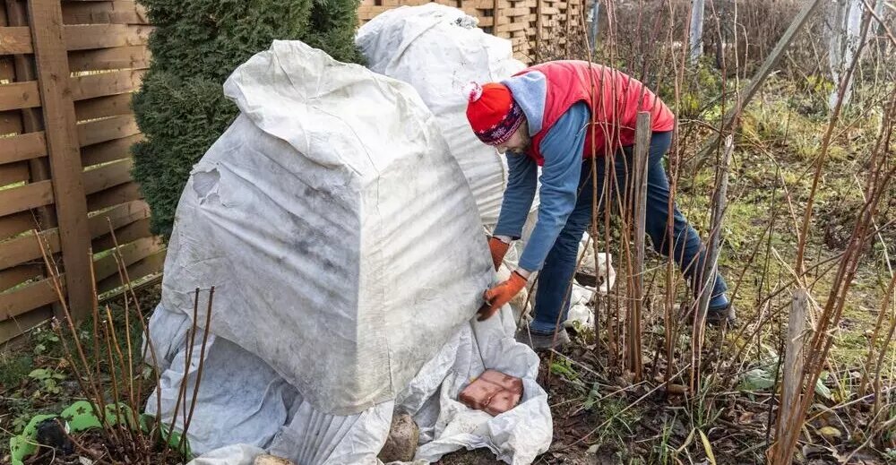 Используйте агроволокно, лапник или тканевые чехлы для укрытия. Убедитесь, что укрывной материал пропускает воздух, чтобы избежать загнивания.