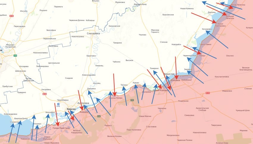 Что касается правобережья, там под удары попали Херсон, Кизомыс, Станислав, Томина Балка, Новодмитровка, Дарьевка, Фёдоровка, Шляховое, Новоалександровка, Широкая Балка, Антоновка, Нововоронцовка, Камышаны, Гончарное, Качкаровка, Красный Маяк, Садовое, Белозёрка, Приозёрное, Приднепровское, Берислав, Томарино, Львово, Понятовка, Саблуковка, Гавриловка, Ивановка, Осокоровка, Токаревка, Веровка, Михайловка, Николаевка, Змиевка, Республиканец, Весёлое, Тягинка, Отрадокаменка и Казацкое.