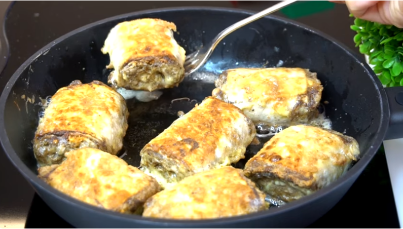 Жарим до золотистого цвета с двух сторон на небольшом огне, под крышкой, чтобы ус