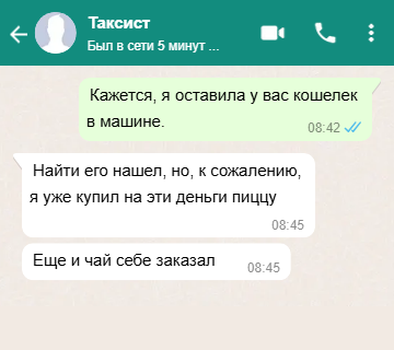 Смешная переписка с таксистом, у которого я забыла кошелек в машине