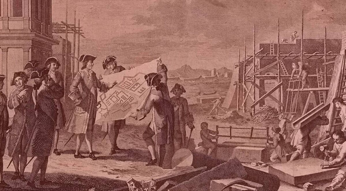 Ни для кого не секрет, что один из главных проектов Петра I это Санкт-Петербург. Император хотел построить город похожий на Амстердам. Почему Амстердам? Именно в этом месте так много водных путей, а жители передвигаются на лодках. Но как видите, сейчас мы добираемся до музеев не на каноэ, а на метро, поэтому не все планы Петра реализовались. Рассказываем в этой статье, как мог бы выглядеть Петербург, если бы все идеи XVIII века воплотились. Место для Петербурга император выбрал не сразу, но присматривал поблизости современного Петербурга. Один из вариантов это устье реки Невы, поближе к острову Котлин. Но в итоге Ижорская земля была выбрана Петром из-за возможности создания водного пути из России в Западную Европу. А почитать, что было на этой земле до строительства Северной столицы (спойлер: не болото), вы можете в нашей прошлой статье: Почему Петербург считают мистическим? С 1703 по 1712 год в городе велась стихийная застройка. Уже стояла Петропавловская крепость, которая изначальн