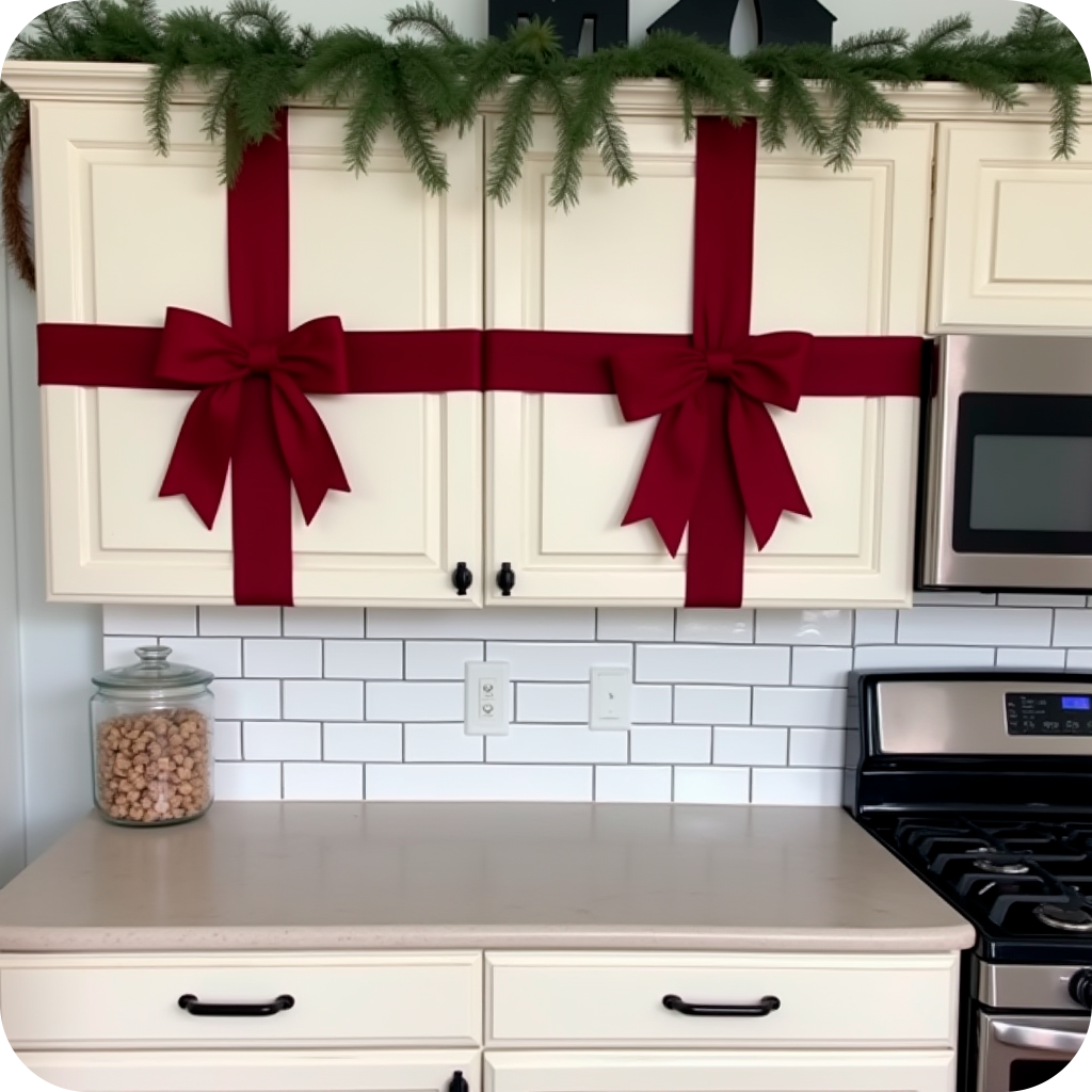 Бантики — главный тренд этого года в декоре интерьера! Эти элегантные элементы уже покорили наши новогодние елки, подарочные упаковки и даже праздничные образы. А почему бы не продолжить этот стиль и не добавить немного красоты и уюта в кухню? Начнём! Для начала нам понадобятся ленты. Атласные, бархатные...какие Вам больше нравятся, и степлер. Делается всё очень быстро) Иииии...готово! На украшение каждого фасада уходит 5-7 минут, с учётом завязывания бантика. Ну красота, не правда ли?) Инструкция по завязыванию бантика тут И всё тоже самое в видео ↓