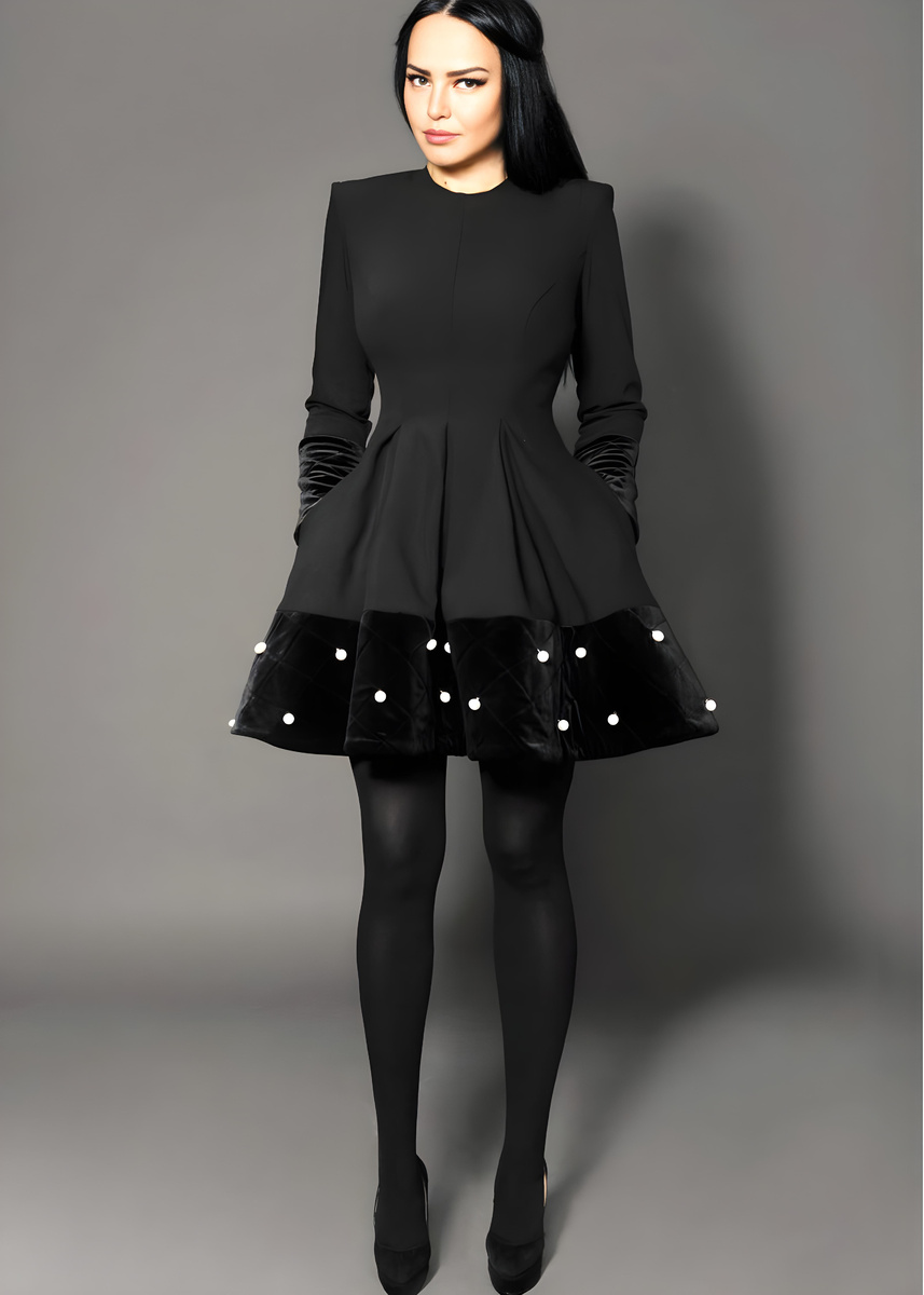 Такое название наряд получил благодаря юбке, по форме напоминающей популярный в нашей стране полевой цветок. Верхняя часть платья облегает фигуру, а его низ расширяется. Крой позволяет замаскировать как полные, так и, наоборот, худые бедра. Универсальный вариант – черное платье. Но на корпоратив можно отправить и в наряде другого оттенка.