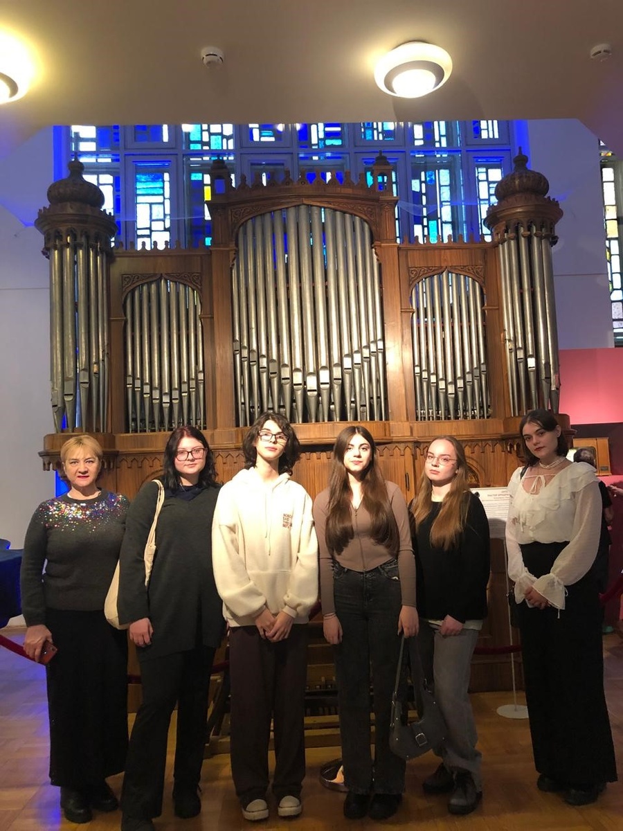 8 декабря 2024 г. обучающиеся гуманитарно-правового колледжа ИЭУиП МГПУ под руководством преподавателя Т.А. Куликовой посетили Российский национальный музей музыки в г. Москве. Тональность мероприятия была невероятно разнообразной. Обучающиеся ознакомились с интерактивной выставкой «От камней до нейросетей», а также с экспозицией музыки русского авангарда «Мы звуковые люди». После экскурсии гостей ожидал концерт Президентского оркестра России. Первые залы экспонировали богатое собрание музыкальных инструментов из различных стран и эпох. Экскурсовод рассказала о создании и эволюции балалайки, познакомила посетителей с «предками» гитары и другими струнными инструментами. Например, кобыз - старинный струнный смычковый инструмент тюркских народов. Его корпус изготавливается из ореха, березы или сосны, а струны - из конского волоса. Любопытным оказался тот факт, что инструменты изготавливались не только из дерева и кожи. В частности, тиктири, или «змеиная флейта».Это индийский язычковый инс