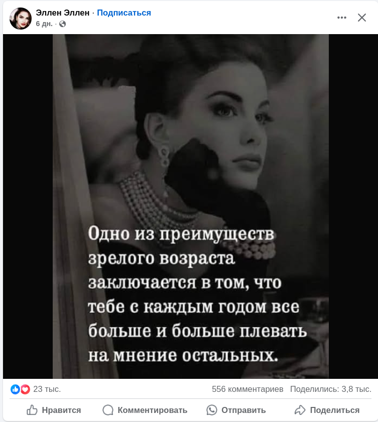 По тому, сколько людей прочитали, прокомментировали и поделились этим списанным у кого-то дешёвым, но сочным афоризмом, можно судить, сколько юных незрелых людей всё это читает, всем этим восхищается и тем не менее не верит этой мудрости накопления слюны с годами... 2024.12.15.