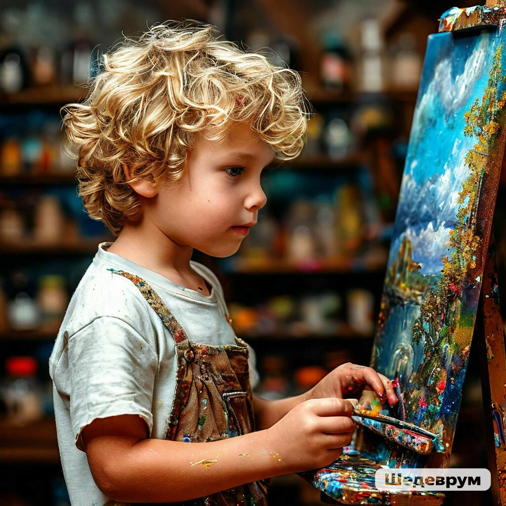 Он растворялся в работе и безумно радовался, когда картина была закончена. Он часто стоял и всматривался в каждый мазок. Когда мама выходила к нему и умоляла выпить молока с печеньем и отбирала кисть под условием, чтобы он пообедал, мальчик начинал нервничать, капризничать, притворялся, как ему не хочется следовать требованиям матери.