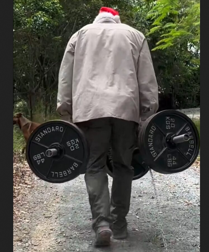 Недавно он выложил у себя на страничке, как он делает фермерскую прогулку спокойным шагом с весом в 226 килограмм, что привлекло к его видео много внимания.