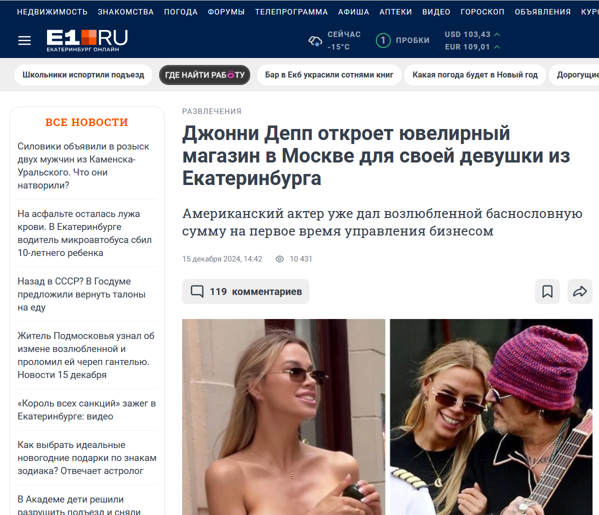 Тем не менее, источники, включая E1.RU, продолжают рассказывать о Деппе не только как о финансисте проекта, но и как о человеке, который продолжает поддерживать амбиции своей партнерши, вызывая дискуссии о том, как личные отношения влияют на их профессиональное сотрудничество.