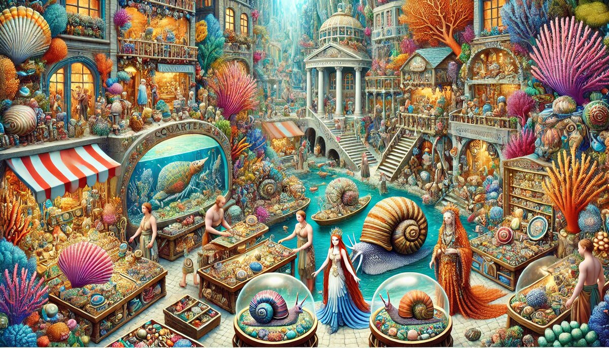 После посещения квартала советников принцесса решила разнообразить нашу прогулку и предъявить нам жителей подводного мира, которые делом занимаются. Потому потащила нас к ремесленникам. Надо сказать этот квартал нам понравился куда больше двух предыдущих. Здесь бурлила жизнь. Несмотря на подводную природу, чем-то эта часть города напоминало торговые кварталы городов на суше. Основные магазины, где продавали свои товары жители, располагались в районе сразу за дворцовым парком, здесь же ремесленники жили и трудились. Ну а раз так, какой смысл местным идти за покупками в торговый квартал, когда можно прямо тут купить нужное у соседа? Потому почти у каждого дома стоял небольшой стол с выставленными на продажу товарами для «своих». Понятие ремесленник у подводных жителей было широкое, поэтому прилавки эти были завалены всякой всячиной: от примитивных тарелок из раковин до изящных ювелирных изделий. Чаще всего встречались лавки именно с одеждой и домашней утварью. В качестве денег здесь ходили жемчужины необычного голубого цвета. У нас их не было, поэтому мы пришли просто поглазеть.