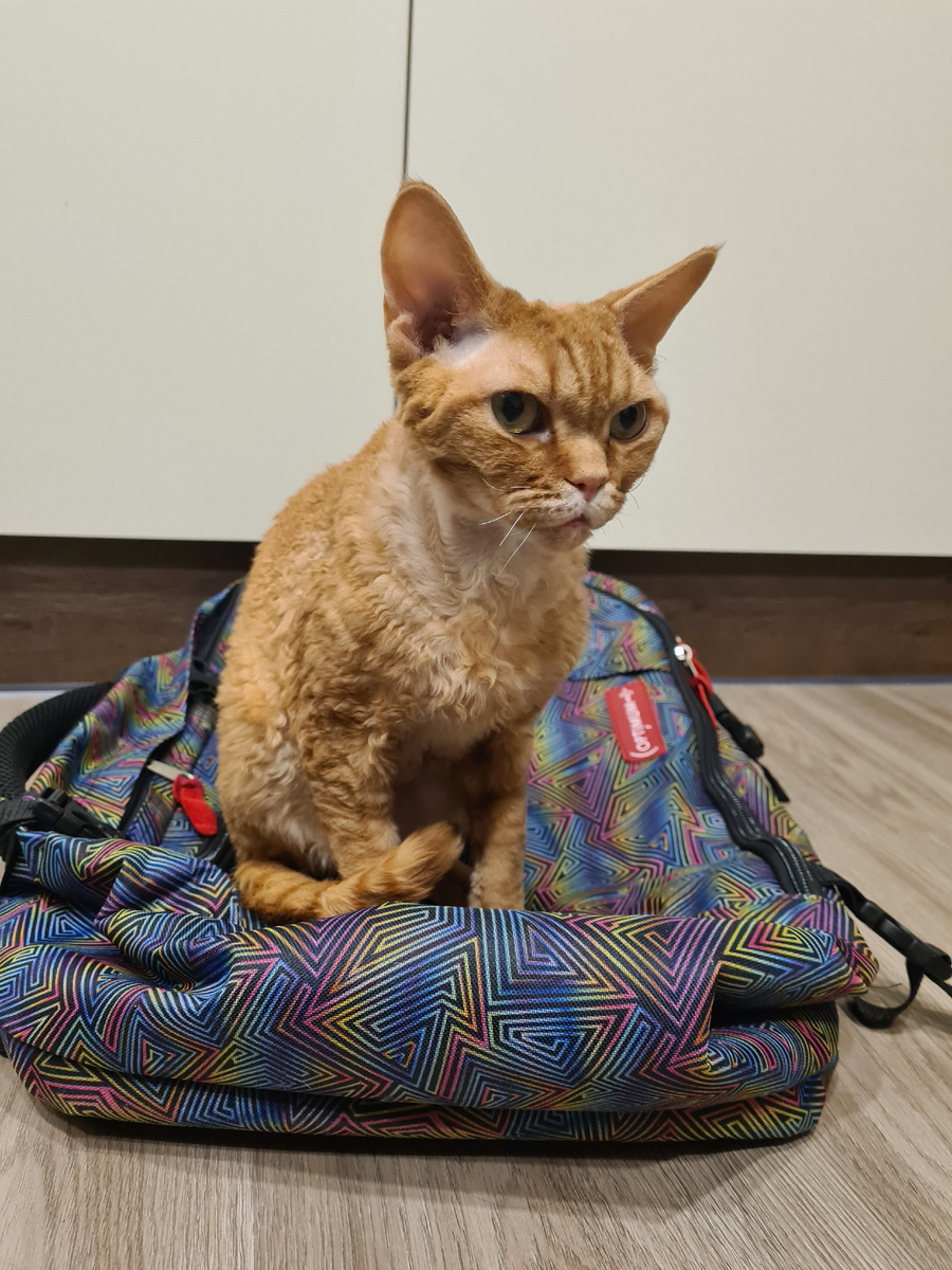Ведь если сесть на рюкзак хозяйки, то она точно никуда не поедет?