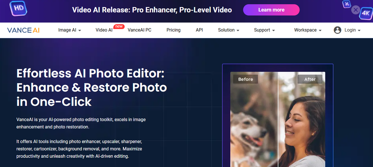 VanceAI предлагает шесть AI-инструментов, которые автоматически анализируют изображение и определяют, где требуется улучшение. Среди доступных функций: увеличение разрешения, удаление размытия и подавление шума. Для работы достаточно выбрать инструмент, загрузить фотографию и нажать на кнопку обработки. Простота применения делает VanceAI доступной в использовании даже для новичков.