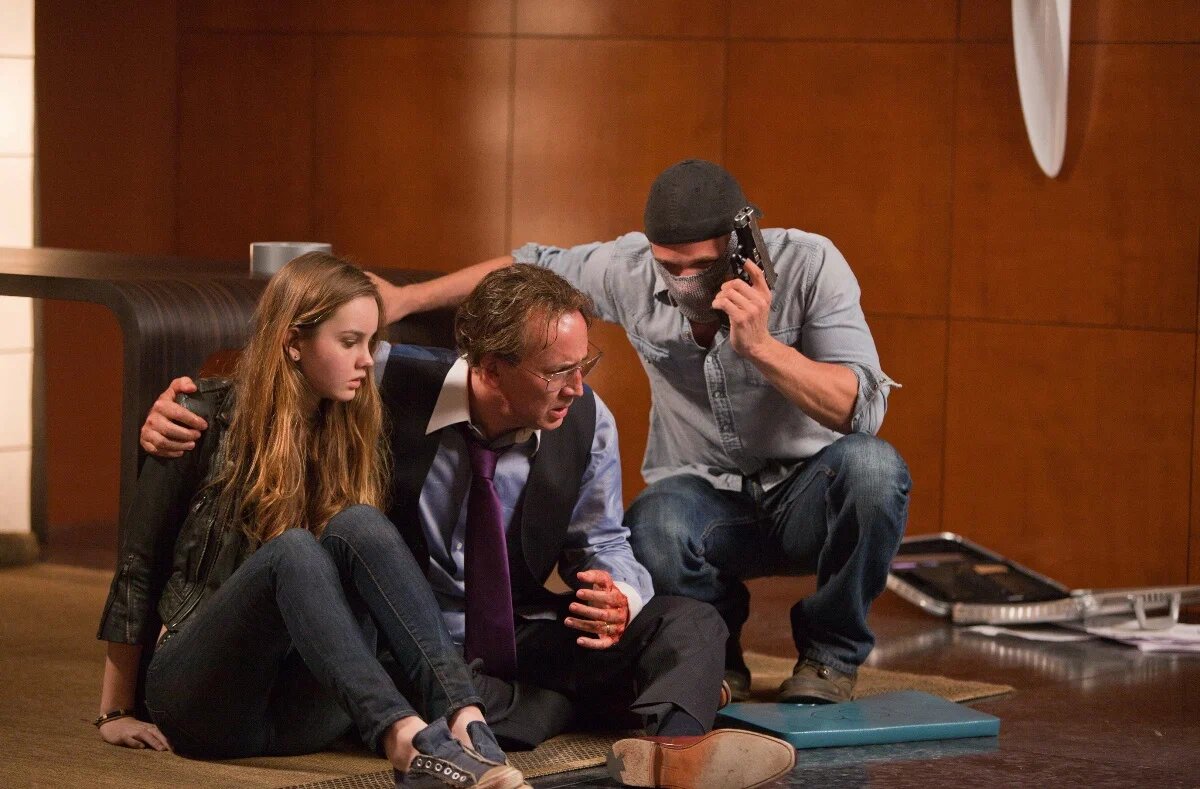 К данному фильму я спокойно могу быть спойлером, поскольку только тот, кто его посмотрит в полной мере осознает всю абсурдность происходящего. В дом достаточно богатых людей врывается банда «полицейских». Уже смешно, да? Как хозяин дома (персонаж Кейджа) понял то, что за воротами полицейские? Никак. Он просто поверил людям, одетым в форму полицейских в то, что они и в самом деле полицейские, хотя в доме существует электронная защита и прямая связь в охранным агентством, которому хозяин такого серьезного особняка наверняка платит большие деньги. Можно же было, в конце концов, у своих охранников уточнить — зачем пришли полицейские. Нет, он открывает им дверь с чистой душой и без сомнения. «Полицейские», разумеется, оказавшись в доме, становятся тут же злоумышленниками, которым нужны все несметные сокровища хозяина дома. Персонажу Кейджа грабители неоднократно и сильно бьют по голове, стреляют в ноги, ломают руки, но до самого конца фильма тот чувствует себя достаточно бодро. Настолько бодро, что смеет перечить и возражать агрессивным и нервным грабителям и никак не хочет выполнять их желание — открыть сейф. А ведь грабители угрожают не только ему, но и его жене.