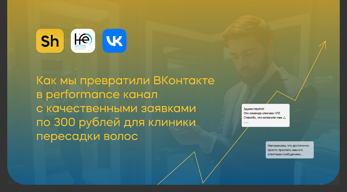 К нам обратилась клиника по пересадке волос HFE с просьбой увеличить количество заявок. Мы проанализировали ситуацию и разработали стратегию, которая позволила в 3 раза увеличить конверсии в заявки. 🤗 Больше полезной информации можно найти в нашем телеграм-канале. Переходите в специальный бот https://t.me/HumanswithAIbot и получите полезняшку. Изначально клиника работала только с контекстной рекламой, а социальные сети велись бесконтрольно и без прописанной воронки продаж. Мы решили взять социальные сети под контроль и смогли превратить их в мощный инструмент для привлечения новых клиентов. Результаты оказались просто впечатляющими. Первый шаг заключался в разработке теста во «ВКонтакте», который привёл к бесплатной консультации. Однако первоначально заявки не конвертировались в консультации, и это заставило нас улучшить их качество, добавив уточняющие вопросы. После нескольких месяцев тестирования и анализа мы обновили креативы, используя фотографии, с которыми могла идентифицироват