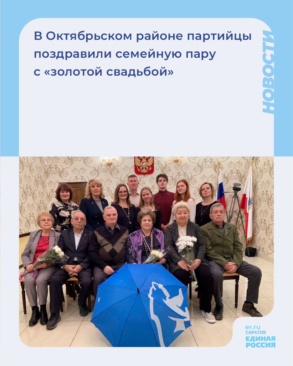 🎂Депутат Саратовской городской думы, региональный координатор проекта «Старшее поколение» партии «Единая Россия» Ирина Видина поздравила семейную пару с юбилеем.