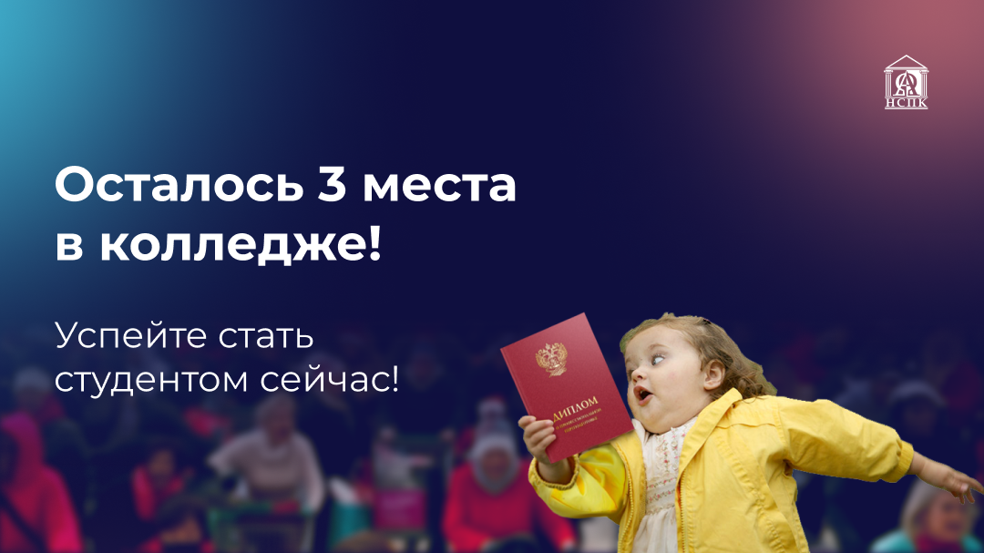 В декабре большинство учебных заведений уже завершили набор на 2024 год, но возможность поступить без потери года есть. Национальный социально-педагогический колледж (НСПК) держит три последних места до 9 декабря. Вы еще успеваете занять одно из них по ноябрьским ценам — со скидкой до -38%. Не упустите шанс получить качественное образование, пока места еще доступны! Сделав шаг сейчас, вы: ✅ начнете путь к новой профессии без потери года; ✅ получите диплом раньше тех, кто пока раздумывает; ✅ ускорите выход на работу и карьерное развитие.🚀 🎓Узнать условия поступления В этом году студентами НСПК стали более 4 600 человек, оценив комфорт, поддержку и возможности для развития. Последуйте их примеру, и вас ждут: ✅ Дистанционное обучение. Учитесь из любого места, совмещая учёбу с работой и личной жизнью. ✅ Диплом государственного образца. Позволит поступить в вуз без