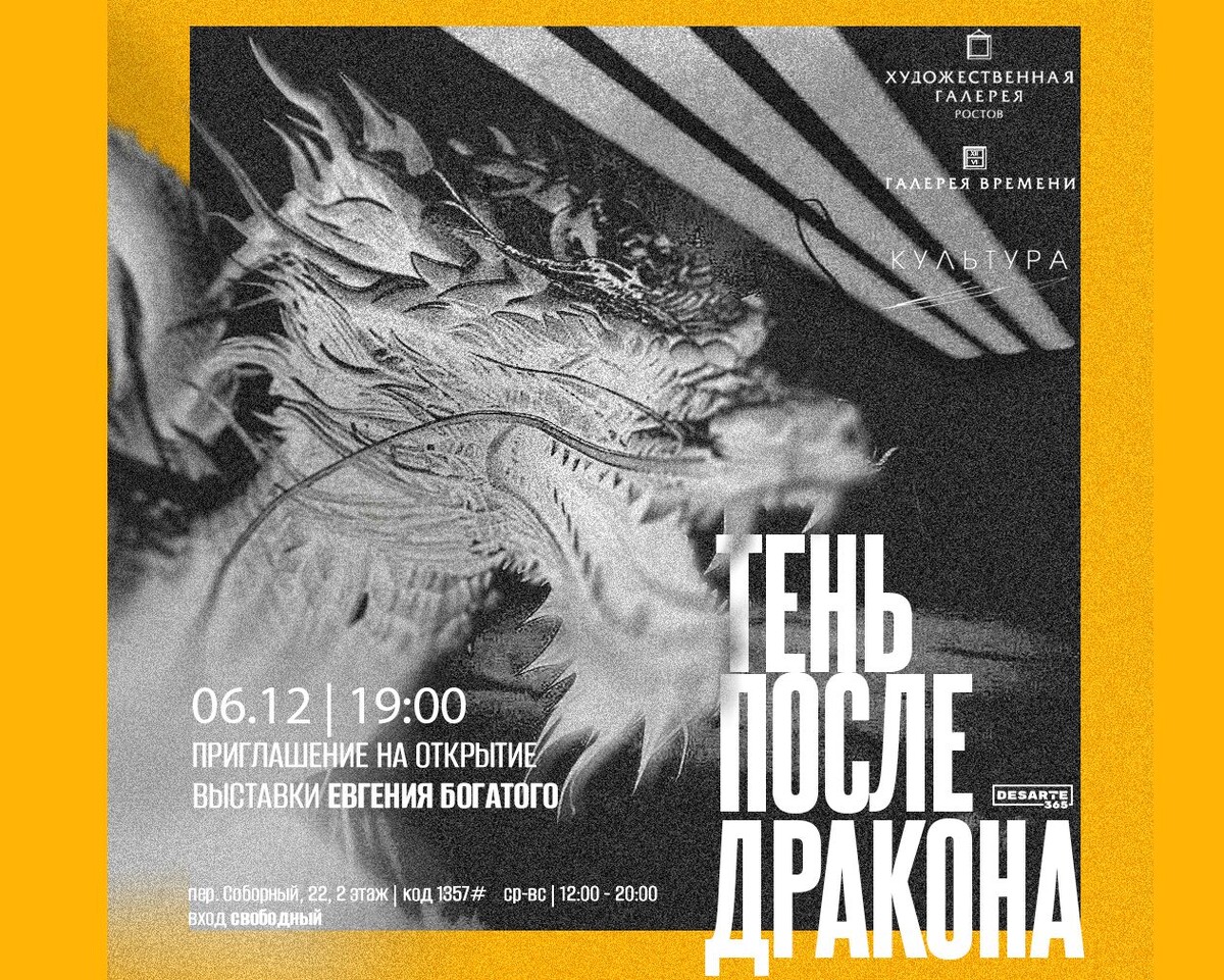 Так называется персональная выставка Евгения Богатого. Она откроется в эту пятницу, 6 декабря, в 19:00, в художественной галерее «Ростов». На открытии гостей ждет экскурсия от художника Евгения Богатого. Евгений Богатый (Москва) – тату- и граффити-художник. В своих работах развивает японский стиль. О главном символе выставки организаторы рассказывают так: «В искусстве существует множество символов, которые, несмотря на культурные и исторические различия, способны соединять людей на глубоком уровне. Один из наиболее ярких и универсальных образов — дракон. В работах этой серии дракон перестает быть исключительно элементом фольклора, но приобретает черты вполне реального существа, чем-то схожего с человеком». На выставке представлено более 30 живописных и графических работ. Также посетителей ждёт специальный квест от Анастасии Ермаковой. Анастасия Ермакова (Москва) работает в стиле современного реализма, уделяя особое внимание Гималаям и традициям этих мест. Дракон, как многогранный симво