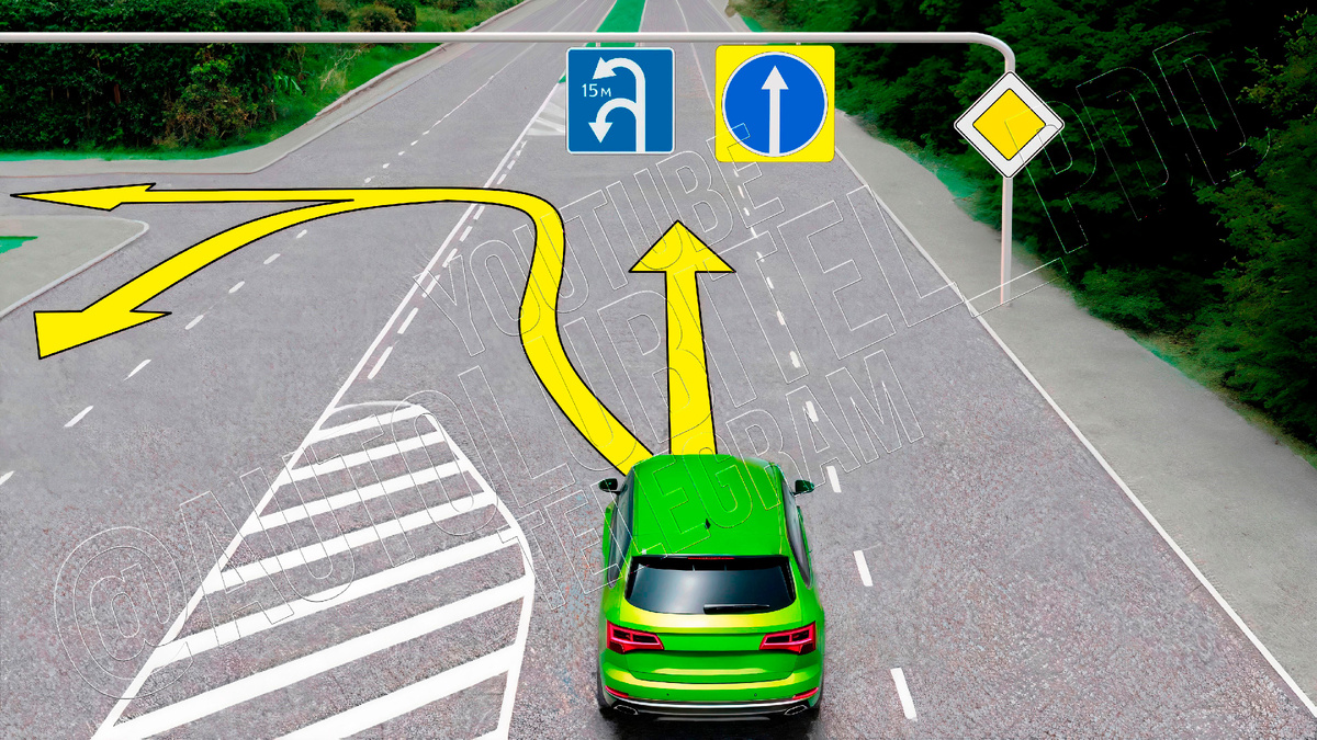 Всем привет, уважаемые автолюбители! Мы продолжаем серию разборов интересных дорожных ситуаций. Сегодня я приготовил непростую для большинства водителей задачу, так как мало кто решал подобные задачи в автошколе. Всё дело в том, что базируется она на относительно недавних поправках к правилам дорожного движения. Как показал предварительный опрос, более двух третей опрошенных не в курсе этих изменений. Предварительные опросы я провожу в своём Telegram-канале, там регулярно выходят новые и, главное, оригинальные задачи на тему ПДД. Подписывайтесь и решайте задачи вместе! А в данной задаче необходимо выяснить, Куда разрешено продолжить движение водителю зеленого авто? На выбор предлагаются следующие варианты ответа: Вариант №1 - только на разворот. Вариант №2 - налево и на разворот. Вариант №3 - прямо и на разворот. Вариант №4 - только прямо. Вариант №5 - в любом направлении. Правильный ответ вы найдете после разбора задачи, но не спешите в него подглядывать. Попробуйте самостоятельно реш