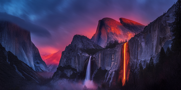 Представьте себе водопад, который вопреки всем законам природы вместо прохладных струй извергает потоки жидкого огня. Именно такое невероятное зрелище ежегодно привлекает тысячи фотографов и туристов в национальный парк Йосемити, где происходит одно из самых удивительных природных световых шоу на планете. В мире существует множество удивительных природных явлений, но огненный водопад в Йосемити занимает особое место в этом списке. Это не просто игра света и воды – это настоящее природное волшебство, которое происходит лишь при идеальном сочетании различных природных факторов. Каждый год в течение нескольких недель в феврале небольшой водопад Хорстейл (Horsetail Fall) на восточной стороне скалы Эль-Капитан превращается в то, что местные жители метко окрестили "огненным водопадом". И хотя никакого реального огня там нет, зрелище настолько впечатляющее, что дух захватывает даже у видавших виды путешественников. Забавно, но это удивительное явление долгое время оставалось незамеченным широ