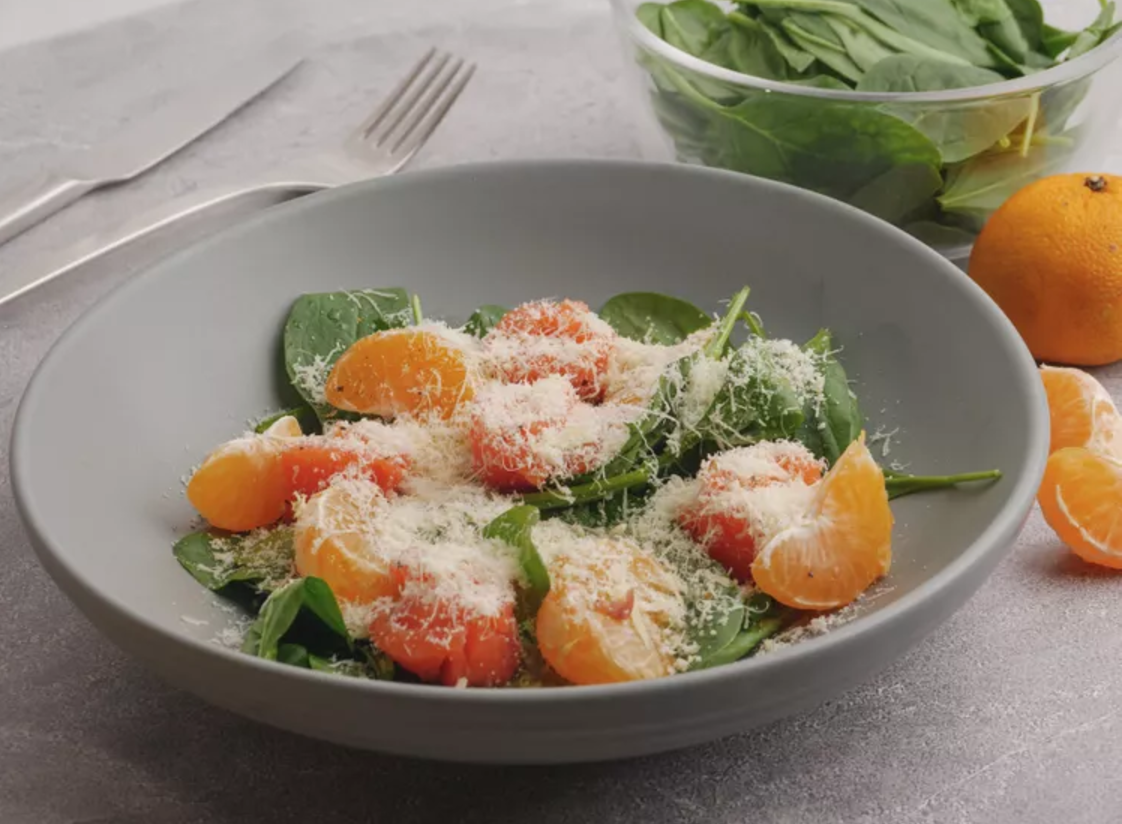 Яркое удовольствие для новогоднего стола! Вам потребуется: ✅ Руккола 150г ✅ Мандарины 140г ✅ Слабосолёная сёмга 200г ✅ Оливковое масло 2 ст.л ✅ Сыр 80г ✅ Соль, перец по вкусу Как готовим? 1. Подготовьте продукты — помойте листья салата, почистите мандарины, удалите кожицу у рыбы и нарежьте её тонкими слайсами 2. Выложите салат на тарелку, так чтобы руккола была снизу, а мандарины и сёмга сверху. Заверните длинные кусочки семги по кругу в форме розочек. 3. Приправьте салат оливковым маслом, натрите сверху сыр перед подачей. Ещё больше рецептов ищите у наших друзей — Food.ru 💚