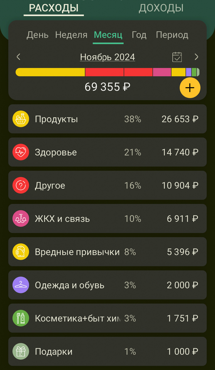 - Вредные привычки -5396 руб. Чуть вылезли за лимит, но все равно не плохо.