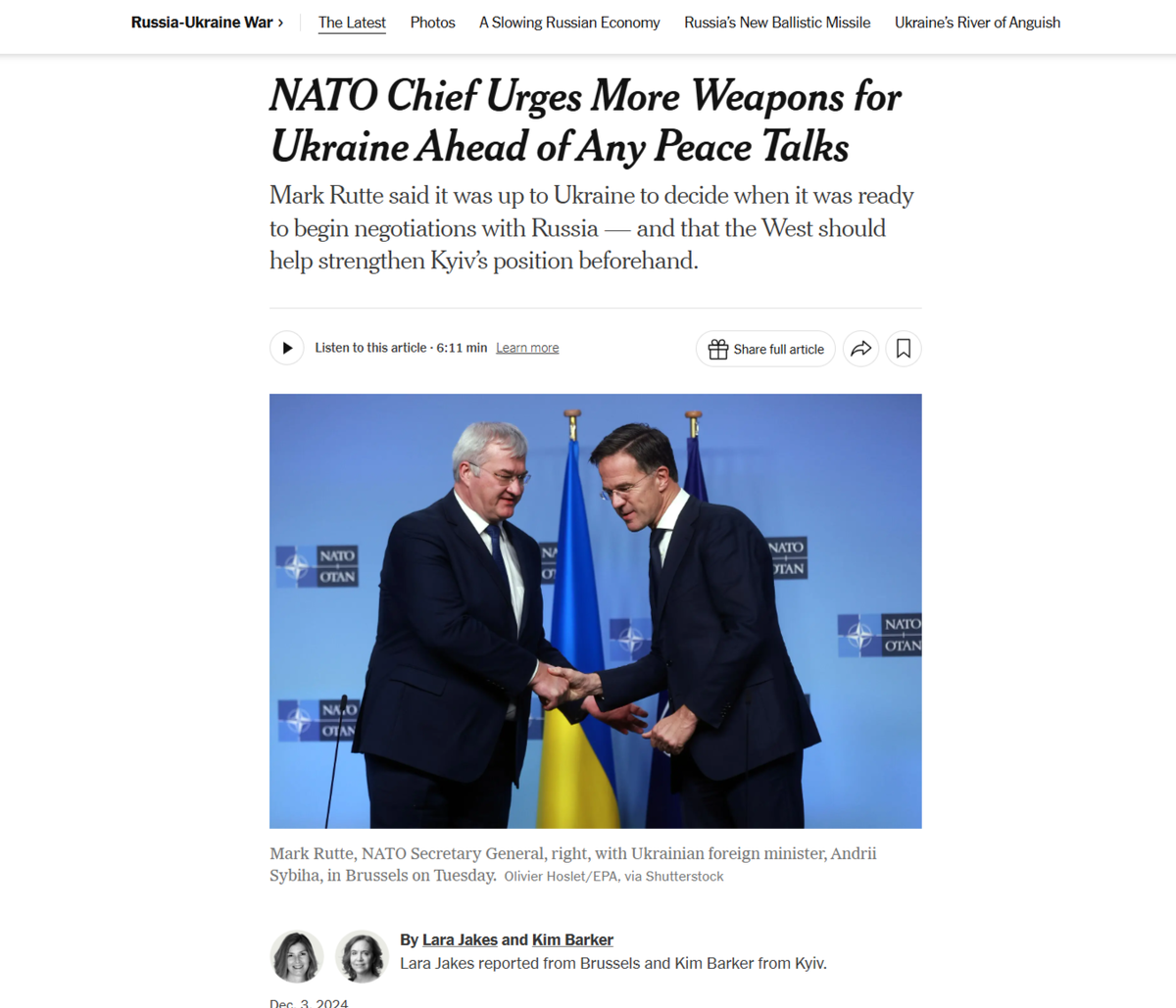 На встрече со сменившим комичного Кулебу новым министром иностранных дел, генсек Рютте заявил: подопечным самим решать, когда вести переговоры, но в альянсе настроены сделать всё необходимое, чтобы это была сильная переговорная позиция.