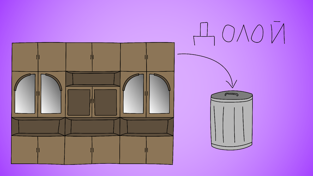 Время модных некогда югославских, чешских и советских стенок уходит — разбираемся, что с ними можно сделать. Честно признаться, мы сразу рекомендуем обращаться к специалистам. Старые «бабушкины» стенки (секции) — это громоздкие предметы, разбирать которые одна морока. Но раз уж вы решились делать всё самостоятельно, вот как это сделать, чтобы облегчить себе жизнь. При помощи отверток снимите со стенки все дверцы. Особенно осторожно отнеситесь к тем, где есть стекло: Мир старых стенок очень разнообразен — она может делиться на несколько уровней, а может быть монолитной. Разобрать монолитную секцию поможет разве что ножовка. После полного возможного разбора от стенки должно остаться что-то вроде каркаса. Чаще всего фрагменты стенки всё равно оказываются негабаритными для лифтов. Поэтому заранее найдите себе помощников, которые возьмутся спускать фрагменты стенки по лестнице вместе с вами. Важно уточнить, что просто вынести стенку из подъезда и поставить у мусорных контейнеров нельзя — эт